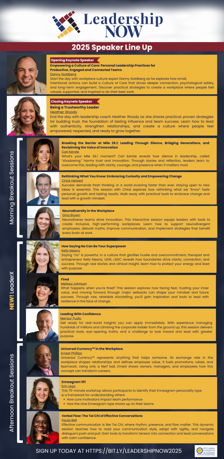 Leadership NOW Annual Regional Conference began in 2013 with the goal to increase the number of people in our region who are actively engaged in promoting and practicing positive leadership qualities. The conference is open to anyone who has an interest in leadership. Ottumwa Leadership Academy is excited to bring this day of learning and leadership development to southeast Iowa.